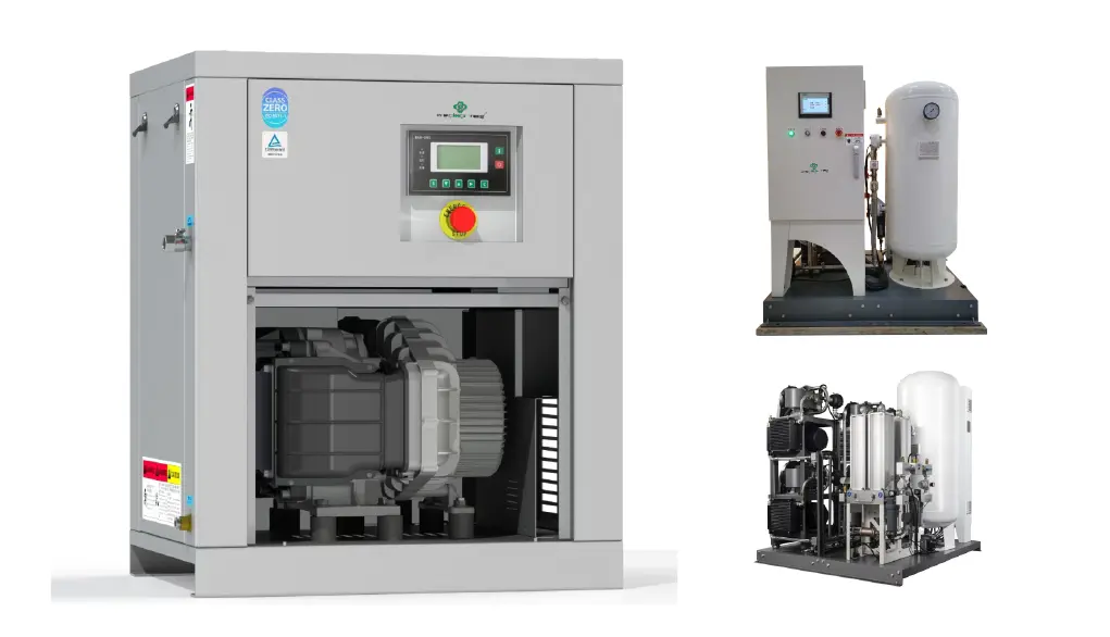 Tıbbi uygulamalar için yaygın olarak kullanılan hava sıkıştırması, yağsız kaydırma kompresörleri, mikro yağ veya yağsız vidalı hava kompresörleri, mikro yağ veya yağsız piston kompresörleri vb. Hava kompresörüne ek olarak, sistem genellikle soğutucular, kurutucular, filtreler, tanklar ve çiğ noktası izleme ve CO izleme gibi izleme ekipmanları içerir.